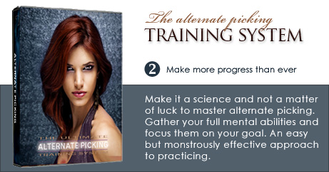 Your brain is the most sophisticated computer on this planet. It has the ability to work wonders for you and achieve results far beyond what you can imagine. But no one gave us a clear set of instructions on how to get the most out of this amazing machine. The Ultimate Alternate Picking System is a step by step approach to building extreme alternate picking skills. It deals with every single element involved in the process. It's so effective that you need less time to accomplish more. It's a manual to your brain and a proven recipe that works.