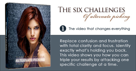 "Alternate picking seemed so hard to learn. I was about to give up on myself. I can't thank you enough for teaching me this method. It took me just a couple of months to train myself to pick as fast as anybody and I'm having so much fun!"